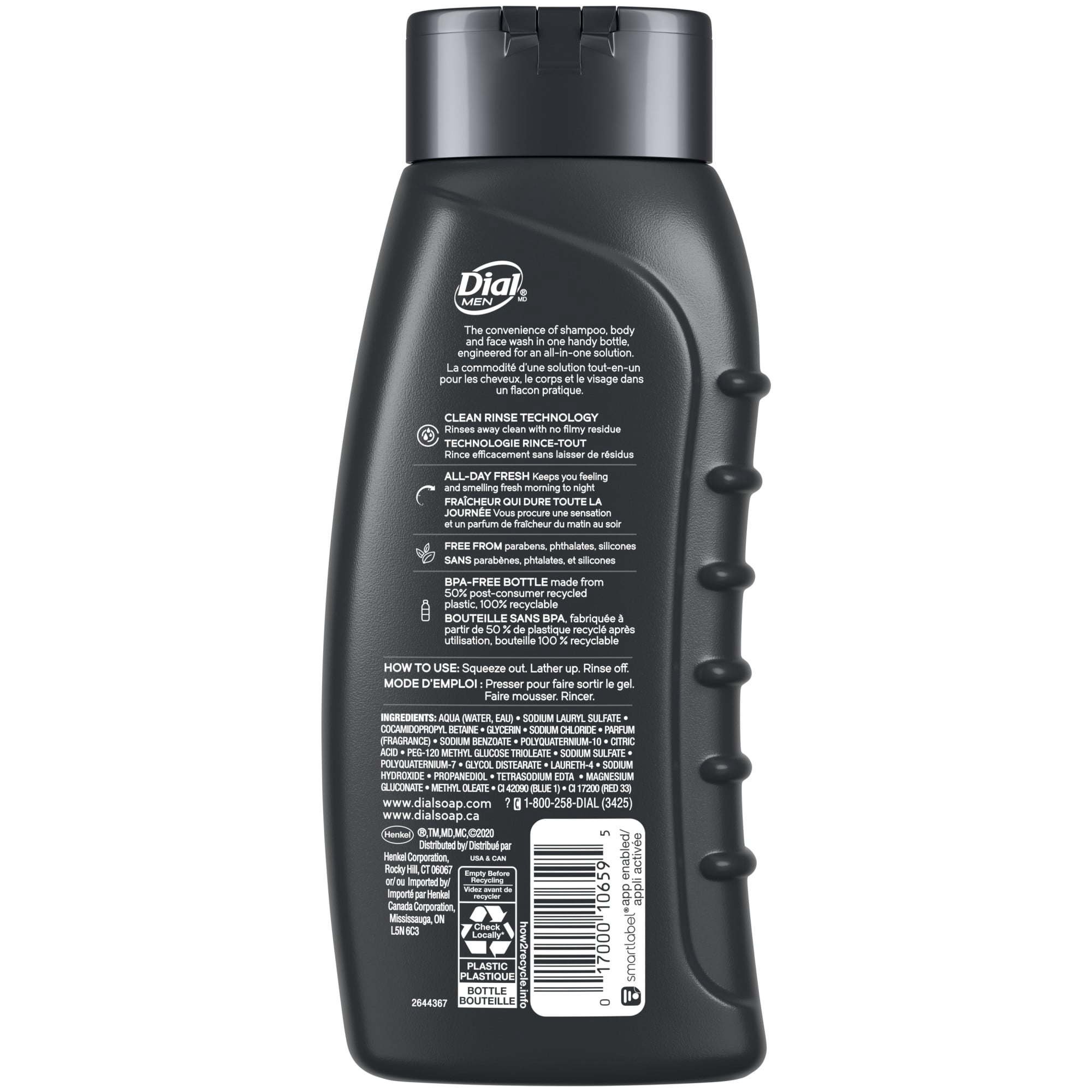 MULTIBENEFIT: Dial Men 3-in-1 formula for your hair, body and face. One bottle, one solution for all your shower needs