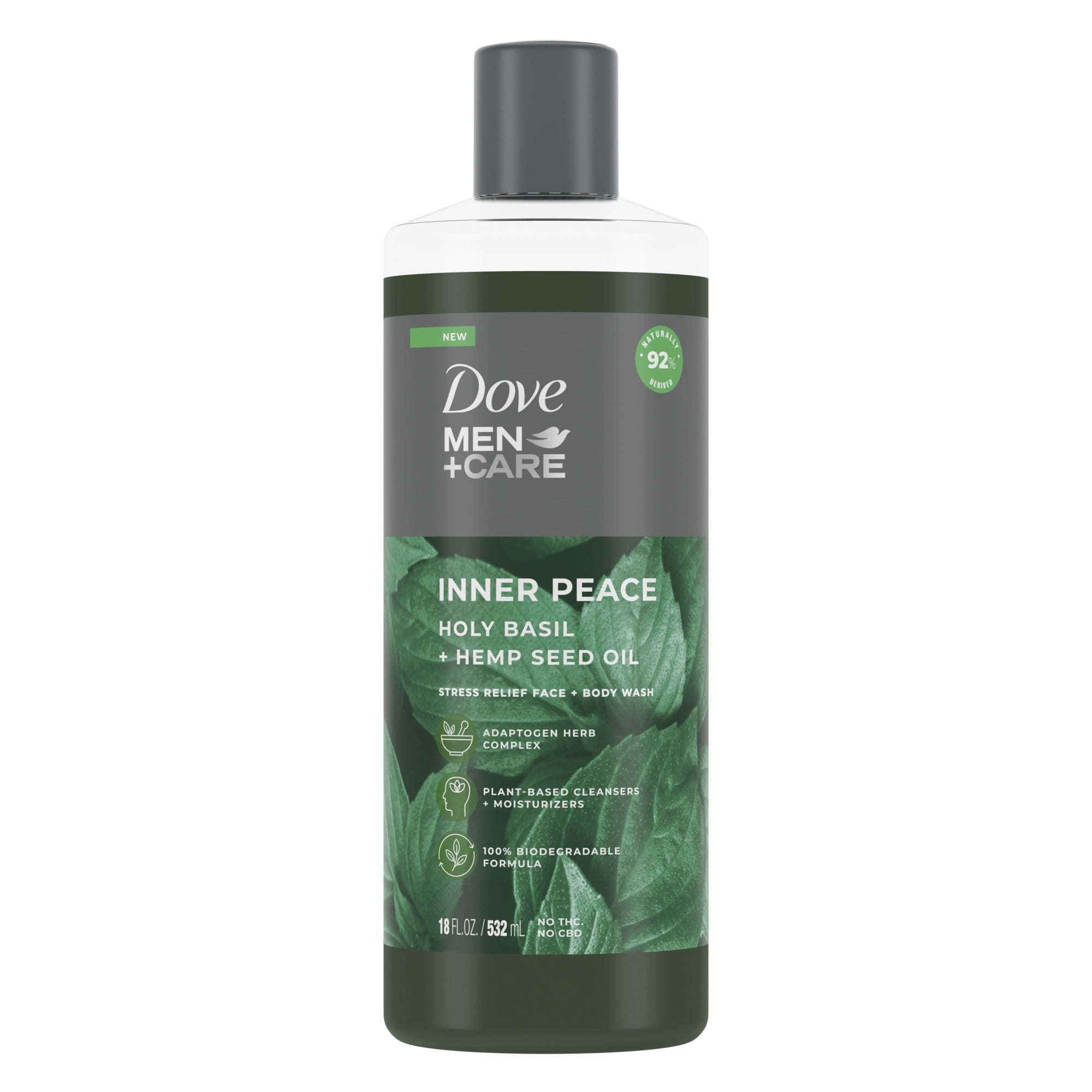De-stress your skin and your senses with Dove Men+Care Face + Body Wash For Men Inner Peace Holy Basil + Hemp Seed Oil. Just step into the shower. This body wash with hemp seed oil scent is the perfect way to start your day with some inner calm. This 2 in 1 body wash without sulfates and parabens doesn’t just harness our unique fragrance technology to give you a naturally bold and wild herbal scent that helps refresh your senses every time you shower. It’s enriched with holy basil and hemp seed essential oils. And our Adaptogen Herb Complex helps protect dry skin from environmental stressors. Your morning shower shouldn’t just be a time to clear and refresh your skin. Take it to the next level with this body wash with hemp seed oil and holy basil scent, so you can clear and refresh your senses as well. Jump in the shower and squeeze a dollop of this 2 in 1 body wash into your hands. Rub them together to lather up. Apply all over your face and body to restore and refresh. Take in that hemp seed and holy basil scent. Now rinse, towel dry and start your day with some inner calm. Feel that energy head-to-toe by pairing this sulfate free body wash for men with Dove Men+Care Lime + Cedarwood Healthy Hair Shampoo and Conditioner. It has a zingy and reinvigorating scent and will leave you with healthier-looking hair. Over 30 years ago, Unilever started to use non-animal testing methods to assess the safety of its products and ingredients. Globally, Dove does not test on animals and is certified Cruelty-Free by PETA. *Ingredient biodegradation based on OECD test methods (301, 302 and/or 310) and principles. **We consider an ingredient naturally derived if it’s unchanged from nature or has a natural source and undergone some processing but keeps more than 50% of its original structure. 92% of our formula, including water, is made up of naturally-derived content.