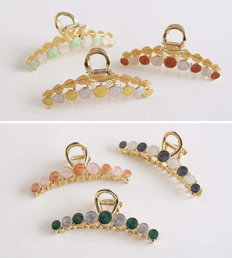 1.This hair claw clip is delicate and stylish, which easy to match any outfit, it will make you elegant and charming.