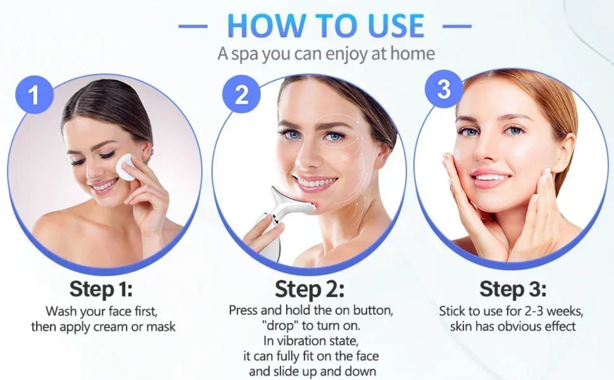 [3 Powerful Modes and Heating ]--Facial Skin Care device heat to approx 45℃ in a matter of seconds when you choose the heat setting, has 3 modes for you to choose from, to meet your various needs a brand new experience to your daily beauty care, and you can enjoy a set of beauty services without going to a beauty salon.