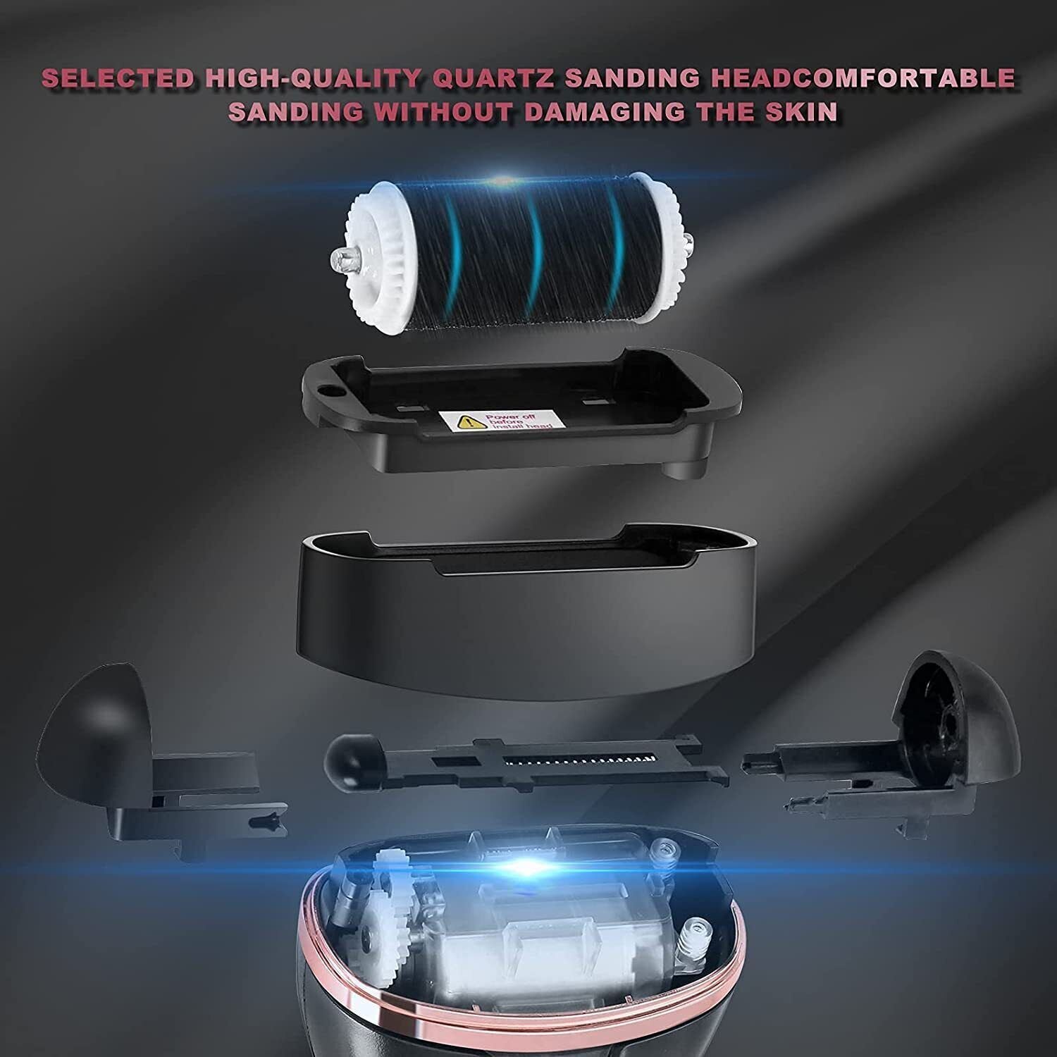 [Powerful, Safe & 2 Speeds Adjustable]This callus remover including 3 different quartz sand grinding heads, and have 2 speeds. 1700x/min when low speed and 2000x/min when high speed which applicable to different dead skins and calluses. It can easily to control, its speed as your request, fast or slow, more convenient and safer.
