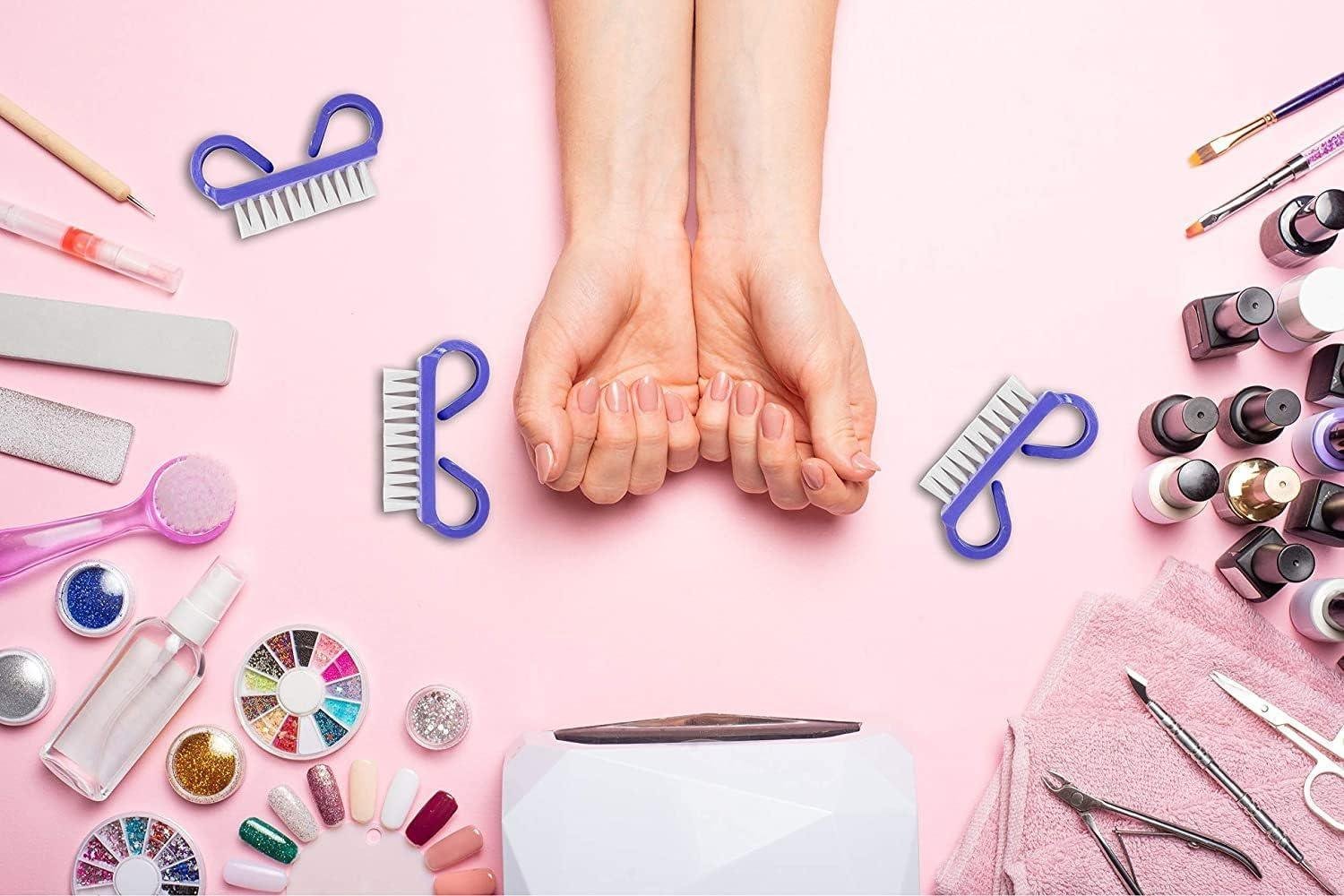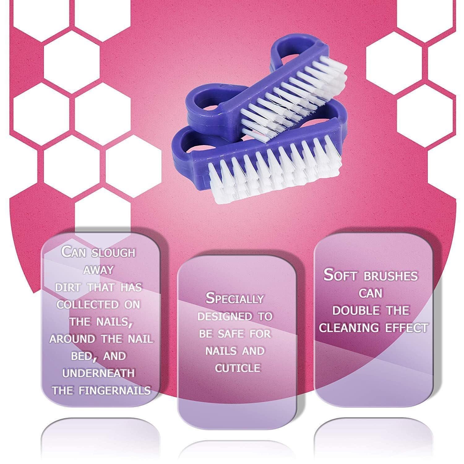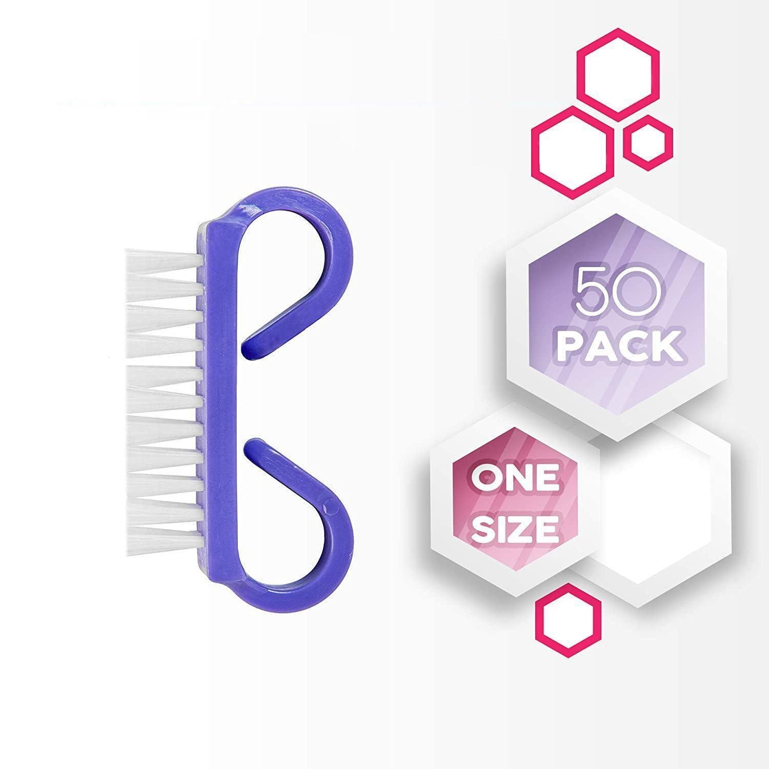 1.50 NAIL BRUSHES: This fingernail scrub brush is used to clean your nails when washing your hands. They are specially designed to be safe for nails and cuticle. Nylon bristles and a purple handle. Come in boxes for convenience. 50 brushes per box.